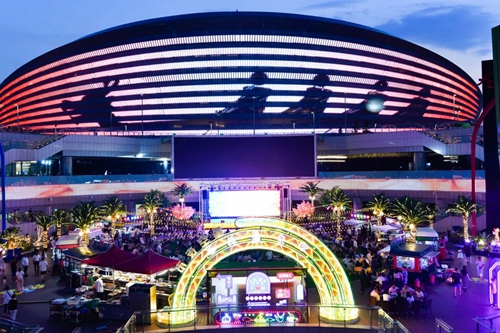 熠熠星光耀向夜空,呼應(yīng)著霓虹閃爍的奧體中心,飄散的煙火氣和美食的香氣充斥著整個(gè)下沉空間,舞臺(tái)音樂節(jié)奏歡快、火爆酷炫,在霓虹交錯(cuò)的空間里,一天的時(shí)間仿佛被夜市拉長(zhǎng),這是年輕人帶給這座城市的無限活力。