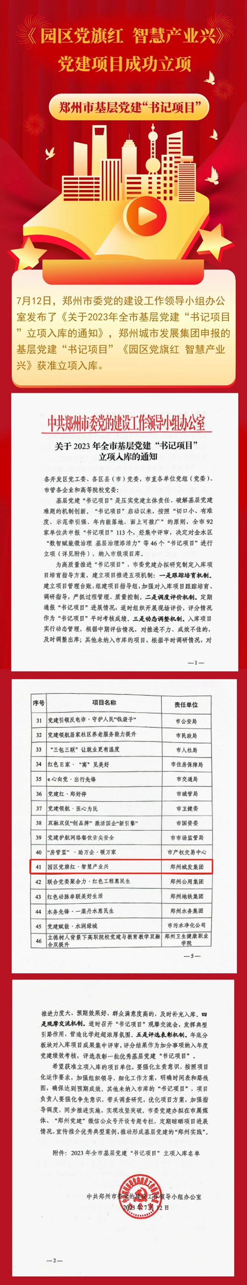 該項(xiàng)“書記項(xiàng)目”主要致力于推動(dòng)黨建與產(chǎn)業(yè)園建設(shè)、招商和運(yùn)營的深度融合,充分發(fā)揮黨建引領(lǐng)作用,切實(shí)為園區(qū)企業(yè)提供“一站式”的黨建服務(wù)、政務(wù)服務(wù)、創(chuàng)新創(chuàng)業(yè)服務(wù)、社會(huì)生活服務(wù)等,為企業(yè)發(fā)展增效賦能,推動(dòng)產(chǎn)業(yè)園黨組織和黨的工作覆蓋更加有效、體制機(jī)制更加科學(xué)、黨組織建設(shè)更加規(guī)范、黨員教育管理更加精準(zhǔn)、基層黨組織保障更加有力,園區(qū)黨建品牌更加響亮,示范作用更加凸顯,形成具有國企特色、符合鄭州實(shí)際的產(chǎn)業(yè)園黨建工作舉措,以高質(zhì)量黨建引領(lǐng)和賦能園區(qū)高質(zhì)量發(fā)展,致力打造在全省、全市具有標(biāo)桿作用和示范效應(yīng)的“黨建+產(chǎn)業(yè)園”新名片。