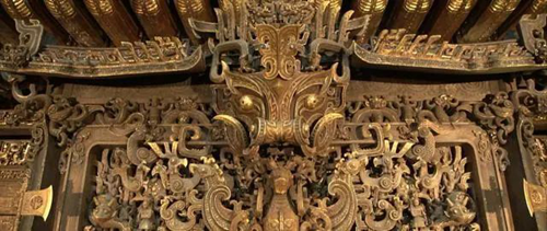 電影中大量的青銅美學(xué)元素,尤其是商王殷壽的龍德殿中磚塊刻有復(fù)雜的饕餮紋,讓人得以一窺商朝這個中國青銅器的鼎盛時代。