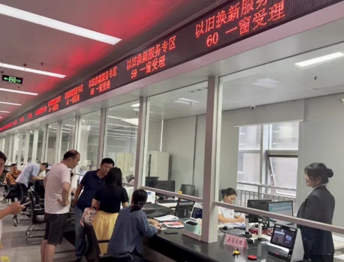 7月3日起,鄭州市住房保障和房地產(chǎn)管理局CBD大廳“以舊換新”專區(qū)正式開始開展業(yè)務,設(shè)置4個服務專窗辦理“以舊換新”業(yè)務。同時,為讓有“以舊換新”意愿的群眾少跑腿,房屋交易中心將服務延伸到企業(yè),在收購主體城發(fā)集團設(shè)置“以舊換新”網(wǎng)簽專區(qū),開展“以舊換新”網(wǎng)簽備案等業(yè)務。
