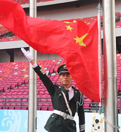 伴隨著慷慨激昂的義勇軍進(jìn)行曲,五星紅旗冉冉升起,鄭州奧體中心全體員工莊嚴(yán)的向國(guó)旗行注目禮,以最崇高的方式表達(dá)對(duì)祖國(guó)母親的敬愛(ài)之情。
