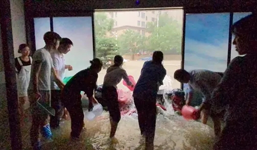 為盡快堵住倒灌的洪水大家群策群力,有的員工沖進大雨中尋找沙袋堵水;有的員工往高處搶搬辦公設施或盡量抬高,盡量避免雨水浸泡;有的員工毫不猶豫的將自己的毛毯棉被拿出來去堵水,有的員工立即抄起舀水的工具參加到抗擊水患、保衛(wèi)公司的戰(zhàn)斗中。大家爭先恐后唯恐不能為公司出力,在大門前站不下太多人往外潑水的情況下,身單力小的員工主動一桶一桶從后門往外提水,為我們的公司少受些損失而默默的奉獻著。