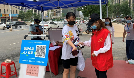 疫情防控刻不容緩。志愿者們首先仔細(xì)詢(xún)問(wèn)了社區(qū)值守人員防疫工作流程及細(xì)節(jié),認(rèn)真記錄社區(qū)防疫的步驟和相關(guān)要求。志愿者們配合社區(qū)工作人員提醒大家正確佩戴口罩,對(duì)進(jìn)出社區(qū)人員進(jìn)行健康掃碼和體溫測(cè)量,一個(gè)個(gè)忙碌的身影為社區(qū)抗疫一線(xiàn)筑牢“防護(hù)墻”。